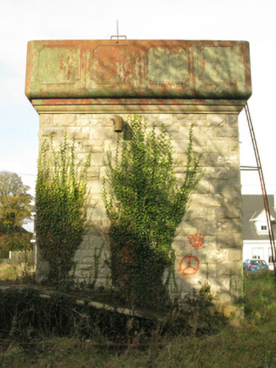 A water tower contributing positively to the group and setting values of the Swinford Railway Station complex.