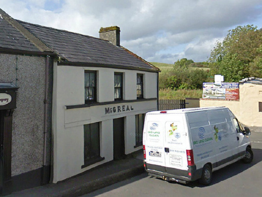 Attached three-bay two-storey house, extant 1897, on a symmetrical plan with shopfront to ground floor. Now disused. Pitched slate roof with clay ridge tiles, moss-covered coping to gable with rendered chimney stack to apex having stringcourse below capping, and replacement uPVC rainwater goods on rendered eaves retaining cast-iron rainwater goods to rear (west) elevation. Rendered walls. Rendered shopfront to ground floor on a symmetrical plan. Square-headed window openings (first floor) with rendered sill course, and concealed dressings framing two-over-two timber sash windows having part exposed sash boxes. Street front with concrete footpath to front.