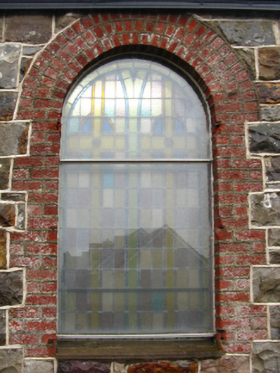 Detached three- or four-bay double-height goods store, commissioned 1894[?]; extant 1897. Decommissioned, 1934. Renovated, 1953[?], with interior remodelled to accommodate alternative use. Replacement pitched slate roof on collared timber construction with clay ridge tiles terminating in reclaimed cut-limestone Celtic Cross finial to apex (north), and uPVC rainwater goods on eaves boards. Repointed tuck pointed snecked rock faced limestone walls with red brick flush quoins to corners. Round-headed openings with repointed red brick block-and-start surrounds framing storm glazing over fixed-pane fittings having stained glass margins centred on square glazing bars. Roundel to gable (south) with repointed red brick header bond voussoirs framing fixed-pane fitting having cast-iron radiating glazing bars. Segmental-headed window opening (north) with repointed red brick block-and-start surround framing storm glazing over fixed-pane fitting having leaded stained glass panels. Full-height interior remodelled, 1953[?], with carpeted central aisle between timber pews, paired timber stations between frosted glass windows, and stepped dais to sanctuary (north) with communion railings centred on altar below stained glass "North Window" (1953). Set in grounds shared with Newport Railway Station.