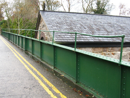 Two-span road bridge over railway line, opened 1894; extant 1897. Sited spanning uprooted railway line with unkempt embankments to railway line.