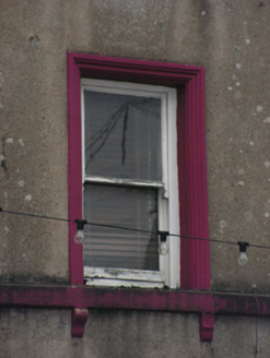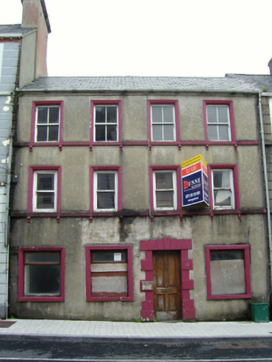 Terraced four-bay three-storey townhouse, extant 1838, probably originally two separate two-bay three-storey houses. "Repaired", 1995, to accommodate continued alternative use. Vacated, 2002. For sale, 2010. Now disused. Replacement pitched artificial slate roof with clay ridge tiles, and galvanised aluminium rainwater goods on timber eaves boards on rendered cut-limestone eaves[?] retaining cast-iron square profile downpipe. Rendered, ruled and lined walls. Square-headed door opening with cut-limestone threshold, and drag edged dragged cut-limestone block-and-start surround centred on triple keystone framing replacement timber panelled door. Square-headed window openings (upper floors) with rendered sill courses on ogee consoles, and moulded rendered surrounds framing one-over-one (first floor) or two-over-two (top floor) timber sash windows having part exposed sash boxes. Interior including (first floor): carved timber surrounds to door openings framing timber panelled doors with carved timber surrounds to window openings framing timber panelled shutters; and (top floor): carved timber surrounds to door openings framing timber boarded doors with carved timber surrounds to window openings framing timber panelled shutters. Street fronted with cobbled footpath to front.