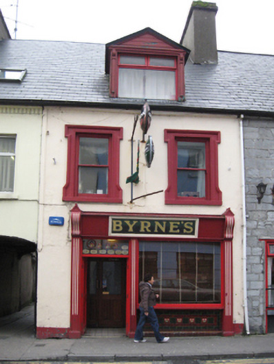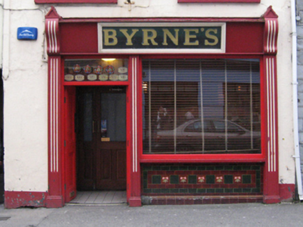 Terraced two-bay two-storey house with dormer attic, extant 1895, with shopfront to ground floor. Reroofed. Replacement pitched artificial slate roof centred on gablet to window opening to dormer attic with ridge tiles terminating in rendered chimney stack having stringcourse below moss-covered capping supporting terracotta or yellow terracotta pots, and cast-iron rainwater goods on rendered cut-limestone eaves. Rendered, ruled and lined walls. Timber shopfront to ground floor. Square-headed window openings (first floor) with cut-limestone sills, and moulded rendered lugged surrounds having bull nose-detailed reveals framing one-over-one timber sash windows having part exposed sash boxes. Street fronted with concrete footpath to front.