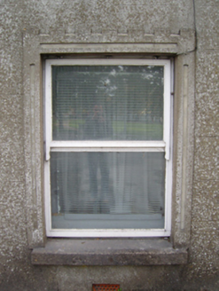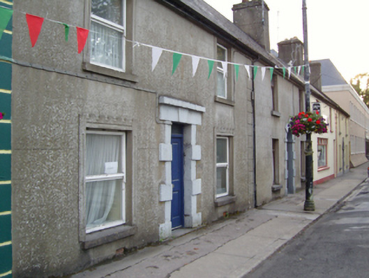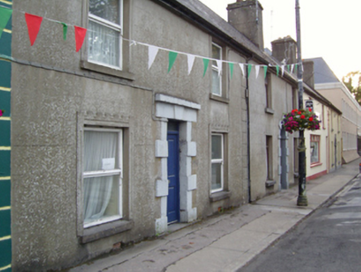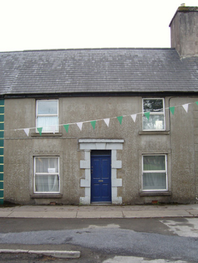 Terraced three-bay two-storey civil servant's house[?], extant 1838. Renovated to accommodate alternative use. In use, 2008. Disused, 2011. One of a terrace of five. Replacement pitched artificial slate roof with ridge tiles terminating in cement rendered chimney stack having moss-covered stepped capping supporting yellow terracotta pots, and cast-iron rainwater goods on timber eaves boards on rendered cut-limestone eaves retaining cast-iron downpipe. Rendered, ruled and lined walls with rusticated rendered piers to ends. Square-headed central door opening with tooled cut-limestone threshold, and drag edged dragged cut-limestone block-and-start surround centred on keystone framing timber panelled door having overlight. Square-headed window openings with rendered cut-limestone sills[?], and rendered surrounds framing replacement timber casement windows replacing one-over-one timber sash windows. Interior including (ground floor): central vestibule retaining tessellated "quarry tile" floor, and timber boarded or tongue-and-groove timber panelled wainscoting supporting carved timber dado rail centred on door opening into entrance hall; and carved timber surrounds to door openings to remainder framing timber panelled doors with timber panelled shutters to window openings. Street fronted with concrete footpath to front.