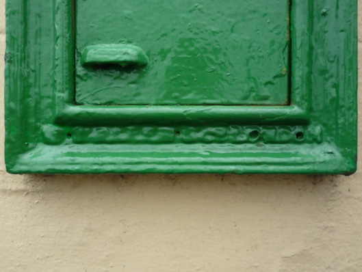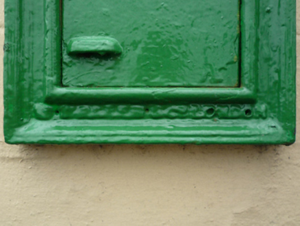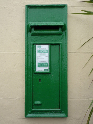 A "wall box" post box supplied by W.T. Allen and Company (fl. 1881-1955) of London representing an interesting example of mass-produced cast-iron work making a pleasing, if largely inconspicuous visual statement in a quayside street scene.