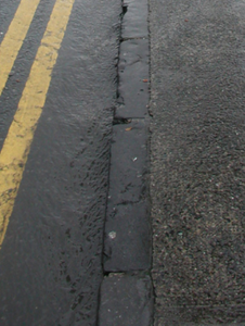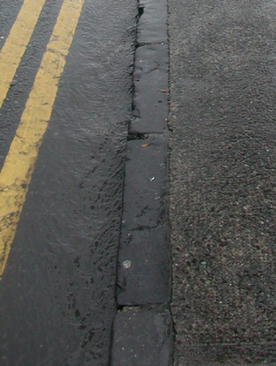 A section of kerbing making a pleasing, if largely inconspicuous visual statement in an urban streetscape.