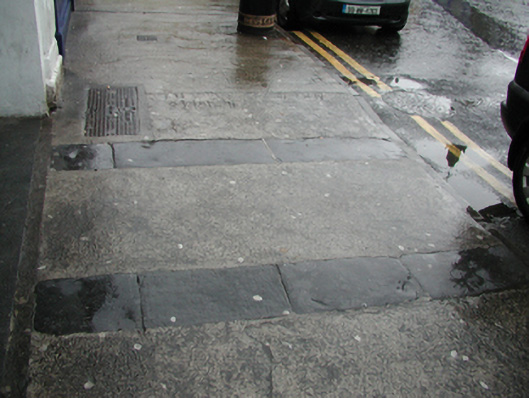 A section of stone work making a pleasing, if largely inconspicuous visual statement in an urban streetscape.