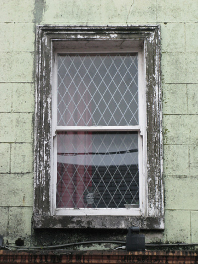 Terraced two-bay three-storey house, extant 1923, with shopfront to ground floor. For sale, 2011. Now disused. One of a pair. Pitched slate roof with clay ridge tiles terminating in rendered chimney stack having "Cyma Recta" or "Cyma Reversa" cornice capping supporting yellow terracotta pots, and cast-iron rainwater goods on rendered eaves retaining cast-iron downpipe. Rendered, ruled and lined walls with rusticated rendered quoins to end. Rendered shopfront to ground floor. Square-headed window openings (upper floors) with concrete sills, and moulded rendered surrounds framing one-over-one timber sash windows. Street fronted with concrete footpath to front.