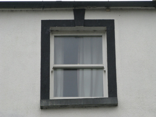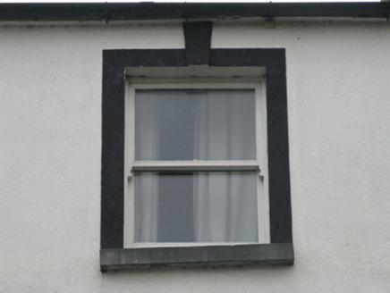 Terraced single-bay three-storey house, extant 1838. Renovated with replacement shopfront inserted to ground floor. One of a pair. Pitched slate roof with clay ridge tiles, and cast-iron rainwater goods on rendered red brick header bond eaves retaining cast-iron downpipe. Replacement rendered wall to front (west) elevation with rendered "bas-relief" strip to end. Square-headed window openings (upper floors) with drag edged dragged cut-limestone sills, and rendered "bas-relief" surrounds over concealed red brick block-and-start construction centred on keystones framing one-over-one timber sash windows having part exposed sash boxes. Interior including (upper floors): timber surrounds to door openings framing timber panelled doors with timber panelled shutters to window openings. Street fronted with concrete footpath to front.