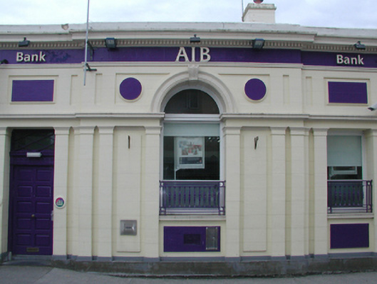 Attached three-bay double-height flat-roofed banking hall, built 1922; opened 1922, on a rectangular plan centred on single-bay full-height "bas-relief" breakfront; single-bay full-height side elevations. Flat roof not visible behind parapet with concealed rainwater goods retaining cast-iron hoppers and square profile downpipes. Rendered walls on rendered cushion course on dragged cut-limestone plinth with paired rendered pilasters supporting cornice on blind frieze; rendered surface finish ("attic") with dentilated "Cavetto" cornice on blind frieze on stringcourse below iron-covered blocking course. Segmental-headed central window opening with sill on panelled riser, and rendered pilasters supporting moulded archivolt centred on fluted keystone framing fixed-pane timber fitting behind cast-iron sill guard. Segmental-headed window openings (side elevations) with sills on panelled risers, and rendered pilasters supporting moulded archivolts centred on fluted keystones framing fixed-pane timber fittings behind cast-iron sill guards. Street fronted with concrete footpath to front.