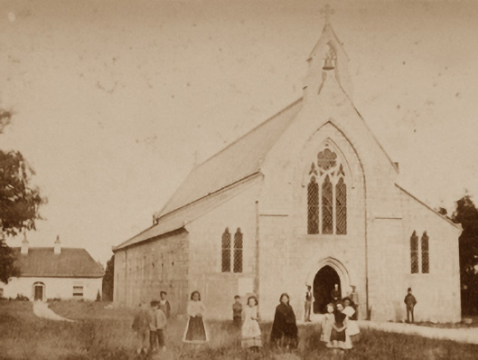 Detached three-bay two-storey presbytery, built 1930, on a symmetrical plan with single-bay two-storey side elevations. Refenestrated, ----. Hipped slate roof with clay ridge tiles, paired rendered central chimney stacks having "Cavetto"-detailed stepped capping supporting terracotta pots, and replacement uPVC rainwater goods on box eaves. Rendered wall to front (west) elevation with rendered strips to corners; roughcast surface finish (remainder) on rendered plinth. Square-headed central door opening in square-headed recess with chamfered timber mullions on "quarry tiled" drag edged tooled cut-limestone step threshold supporting chamfered timber mullion, and concealed dressings framing timber panelled door having sidelights on diagonal timber boarded panelled risers below overlight. Square-headed window openings with drag edged dragged cut-limestone sills, and concealed dressings framing replacement uPVC casement windows with replacement aluminium casement windows to rear (east) elevation. Set in landscaped grounds shared with Saint Mary's Catholic Church.