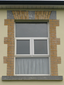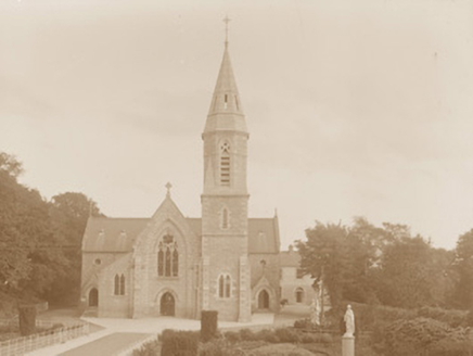 Detached three-bay (two-bay deep) two-storey parochial house, built 1891, on a rectangular plan originally three-bay single-storey. "Improved", 1908, producing present composition. Renovated, ----. Hipped slate roof with clay ridge tiles, paired rendered central chimney stacks on rendered bases having corbelled stepped capping supporting terracotta pots, and replacement uPVC rainwater goods on box eaves retaining cast-iron octagonal or ogee hoppers and downpipes. Replacement cement rendered walls on rendered chamfered plinth with drag edged rusticated cut-limestone quoins to corners. Segmental-headed central door opening with timber mullions on drag edged tooled cut-limestone step threshold supporting timber transom, and yellow brick block-and-start surround centred on drag edged tooled cut-limestone keystone framing timber panelled door having sidelights on diagonal timber boarded panelled risers below fanlight. Square-headed window openings with drag edged dragged cut-limestone sills, and yellow brick block-and-start surrounds centred on drag edged tooled cut-limestone keystones framing replacement uPVC casement windows replacing two-over-two timber sash windows. Interior including (ground floor): central hall retaining timber surrounds to door openings framing timber panelled doors; and timber surrounds to door openings to remainder framing timber panelled doors with timber panelled splayed reveals or shutters to window openings. Set in landscaped grounds shared with Saint Mary's Catholic Church.