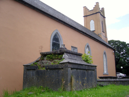 Freestanding drag edged dragged limestone ashlar tomb, dated 1811, on a square plan. Set in landscaped grounds shared with Saint Mary's Church (Ballinrobe) retaining plinth to perimeter with railings now missing.