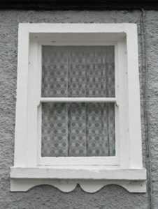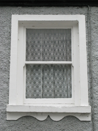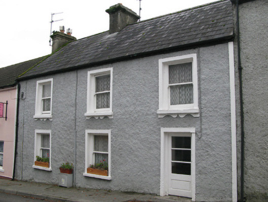 Terraced three-bay two-storey house, extant 1894. One of a pair. Pitched slate roof with clay ridge tiles, rendered chimney stack having "Cavetto"-detailed stepped capping supporting terracotta or yellow terracotta pots, moss-covered coping to gable, and cast-iron rainwater goods on rendered eaves retaining cast-iron downpipe. Roughcast battered walls with rendered strips to ends. Square-headed window openings with concrete sills[?], and rendered surrounds framing one-over-one timber sash windows having part exposed sash boxes. Street fronted with concrete footpath to front.