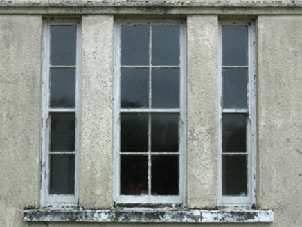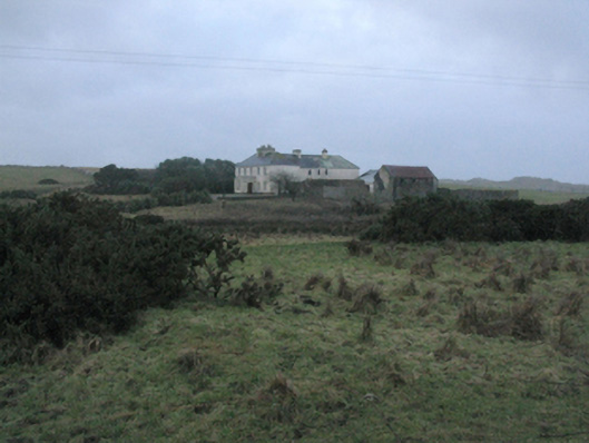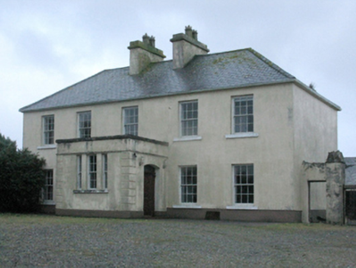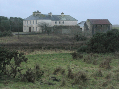 Detached five-bay two-storey farmhouse, rebuilt 1861; extant 1896, on a cruciform plan centred on single-bay single-storey flat-roofed projecting porch to ground floor with single-bay (two-bay deep) full-height central return (west). Occupied, 1911. For sale, 1937. Sold, 1965. Extensively renovated, 1981. For sale, 2008. Now disused. Hipped slate roof on a T-shaped plan centred on hipped slate roof (west) with clay ridge tiles, paired rendered central chimney stacks having stringcourses below capping supporting crested terracotta tapered pots, and replacement uPVC rainwater goods on rendered cut-limestone eaves. Replacement cement rendered walls bellcast over rendered plinth. Square-headed window openings centred on square-headed window opening in tripartite arrangement (ground floor) with drag edged dragged cut-limestone sills, and concealed dressings framing replacement six-over-six timber sash windows centred on four-over-four timber sash window having two-over-two sidelights. Interior including (ground floor): vestibule; segmental-headed opening into entrance hall-cum-staircase hall with Classical-style surround centred on keystone; entrance hall-cum-staircase hall retaining carved timber surrounds to door openings framing timber panelled doors, staircase on a dog leg plan with turned timber balusters supporting carved timber banister terminating in tapered timber newel, carved timber surrounds to door openings to landing framing timber panelled doors centred on carved timber surround to window opening framing timber panelled reveals or shutters, and moulded plasterwork cornice to ceiling centred on plasterwork ceiling rose; drawing room (south) retaining carved timber surround to door opening framing timber panelled door with carved timber surrounds to window openings framing timber panelled reveals or shutters on panelled risers, Classical-style chimneypiece, and picture railing below moulded plasterwork cornice to ceiling; dining room (north) retaining carved timber surround to door opening framing timber panelled door with carved timber surrounds to window openings framing timber panelled reveals or shutters on panelled risers, reclaimed chimneypiece, and picture railing below moulded plasterwork cornice to ceiling; and (first floor): carved timber surrounds to door openings framing timber panelled doors with carved timber surrounds to window openings framing timber panelled reveals or shutters. Set in unkempt grounds.