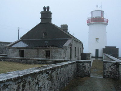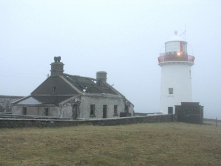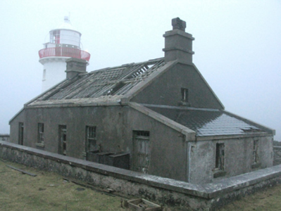 Detached three-bay single-storey lighthouse keeper's house with dormer attic, built 1853-5; occupied 1901, on a symmetrical plan. Occupied, 1911. Vacated, 1931[?]. Now disused. Pitched roof on collared timber construction with slate finish now missing, roll moulded clay or terracotta ridge tiles, cut-granite coping to gables with rendered chimney stacks to apexes having cut-granite stringcourses below stepped capping supporting terracotta pots, and no rainwater goods surviving on cut-granite eaves retaining cast-iron downpipes. Roughcast wall to front (south) elevation on cut-granite chamfered plinth; rendered surface finish (remainder). Square-headed central opposing door openings with cut-granite step thresholds, and concealed red brick block-and-start surrounds with fittings now missing retaining overlights. Square-headed flanking window openings with cut-granite sills, and concealed dressings framing eight-over-eight timber sash windows. Interior including (ground floor): central hall with flagged floor; and remains of timber surrounds to door openings to remainder framing remains of timber doors with timber panelled shutters to window openings. Set in grounds shared with Broadhaven Lighthouse.