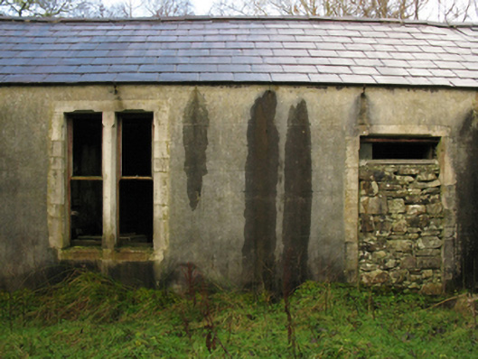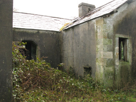 Detached three-bay single-storey shooting lodge, between 1864-76, on a U-shaped plan with pair of single-bay (single-bay deep) single-storey returns (east). Occupied, 1901; 1911. Now disused. Pitched slate roof on a U-shaped plan on collared timber construction with clay ridge tiles, rendered chimney stacks on axis with ridge having stepped capping, remains of timber bargeboards to gables on timber purlins, and no rainwater goods surviving on rendered eaves. Rendered, ruled and lined walls with drag edged tooled cut-limestone flush quoins to corners. Square-headed central door opening with drag edged tooled cut-limestone surround having chamfered reveals framing rubble stone infill. Square-headed flanking window openings in bipartite arrangement with drag edged tooled cut-limestone surrounds having chamfered reveals framing remains of one-over-one timber sash windows. Shouldered square-headed central open internal porch to rear (east) elevation with drag edged tooled cut-limestone block-and-start surround having chamfered reveals. Interior in ruins. Set in unkempt grounds.