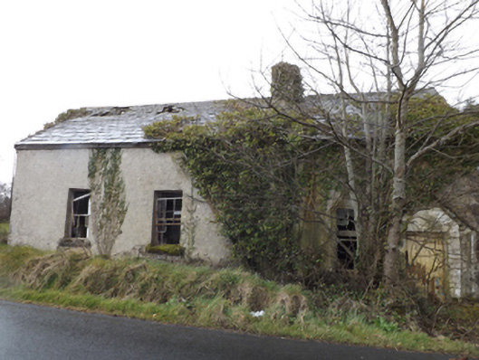 Detached three-bay single-storey school house with half-dormer attic, extant 1838, on a rectangular plan with outline of single-bay single-storey gabled advanced or projecting porch. In use, 1901. Disused, 1911. Pitched slate roof on timber construction with clay ridge tiles, ivy-covered rendered off-central chimney stack with capping not visible, and no rainwater goods surviving on cut-limestone eaves. Part ivy-covered fine roughcast walls. Square-headed window openings (east) with cut-limestone sills, and concealed dressings framing remains of six-over-six timber sash windows. Square-headed door opening (west) with concealed dressings framing timber boarded door. Square-headed window openings to gables to side elevations with cut-limestone sills, and concealed dressings framing one one-over-one timber sash windows. Road fronted with overgrown verge to front.