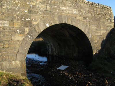 A bridge identified as an integral component of the early nineteenth-century civil engineering heritage of County Mayo on account of the connections with the branching-out of the so-called "Central Road" by William Bald (c.1789-1857), cartographer and engineer (appointed 1809), with the architectural value of the composition suggested not only by the "sparrow pecked" limestone dressings demonstrating good quality workmanship, but also by the elegant "sweep" of the arch making a pleasing visual statement at a crossing over a minor stream: meanwhile, a discreet benchmark remains of additional interest for the connections with cartography and the preparation of maps by the Ordnance Survey (established 1824).