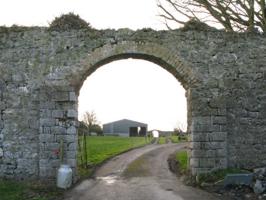 Walled garden, extant 1838, on a trapezoidal plan with creeper- or ivy-covered coursed rubble limestone boundary wall to perimeter having overgrown coping centred on segmental-headed opposing gateways. Now disused. Set in unkempt grounds shared with Castle Gore.