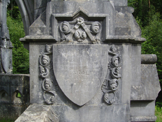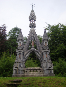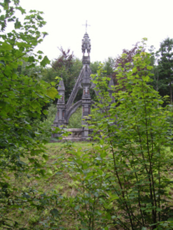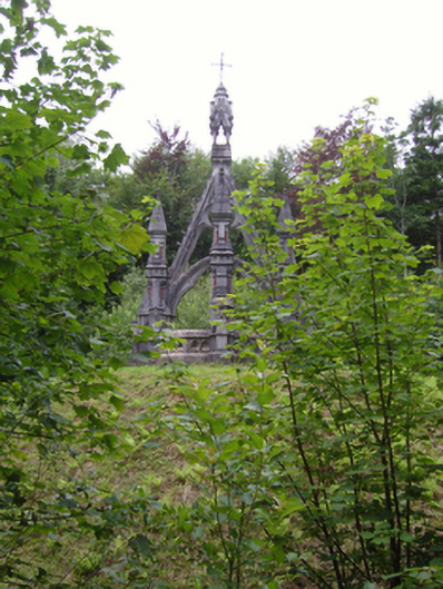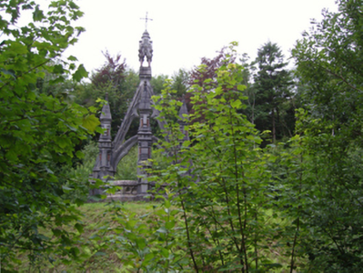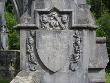 Freestanding drag edged dragged cut-limestone funerary monument, extant 1896, on a cruciform plan. Set on artificial knoll in wooded grounds shared with Belleek Manor.