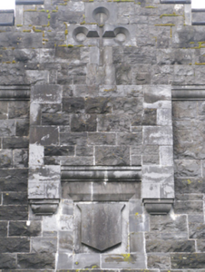 A gate house erected to designs (1872) attributed to James Franklin Fuller (1835-1924) of Great Brunswick Street [Pearse Street], Dublin (Craig and Garner 1976, 33), illustrating the continued development or "improvement" of the Belleek Manor estate in the later nineteenth century with the architectural value of the composition, one recalling the Fuller-designed gate screen (1881) at Ashford Castle (see 31216015), confirmed by such attributes as the near-symmetrical footprint offset by a slender turret; the robust rock faced surface finish offset by sheer limestone dressings providing an interplay of light and shade in an otherwise monochrome palette; the slender profile of the openings underpinning a "medieval" Hard Gothic theme; and the crow stepped gabled roofline.