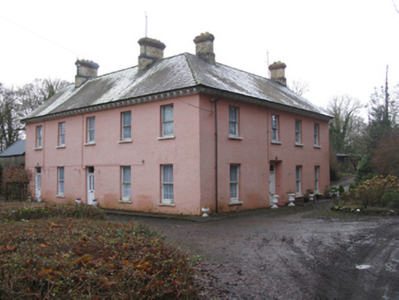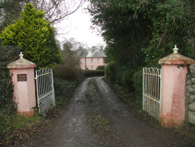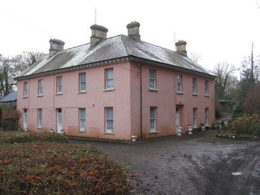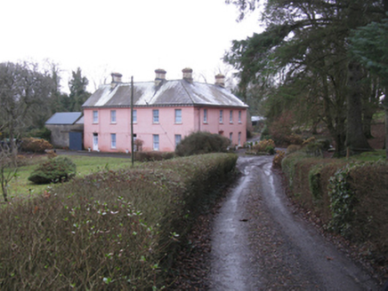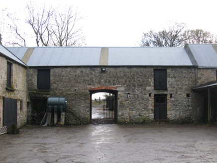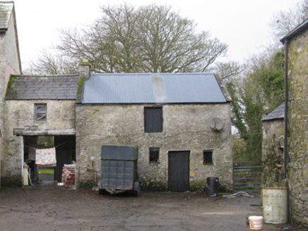 Detached five-bay two-storey "double-fronted" farmhouse, extant 1870, on an L-shaped plan with four-bay two-storey side (south) elevation. Occupied, 1911. Sold, 1930. Pitched slate roof on an L-shaped plan with clay ridge tiles, yellow brick Rattrap bond chimney stacks on chamfered bases having red brick corbelled stepped stringcourses below capping supporting terracotta or yellow terracotta pots, and cast-iron rainwater goods on slightly overhanging eaves having timber consoles retaining cast-iron octagonal or ogee hoppers and downpipes. Rendered, ruled and lined walls; fine roughcast surface finish (east) over coursed rubble limestone construction. Square-headed central door opening with concealed dressings framing glazed timber panelled door having overlight. Square-headed window openings with dragged cut-limestone sills, and concealed red brick block-and-start surrounds framing one-over-one timber sash windows. Set in landscaped grounds with rendered octagonal piers to perimeter having capping supporting looped wrought iron double gates.