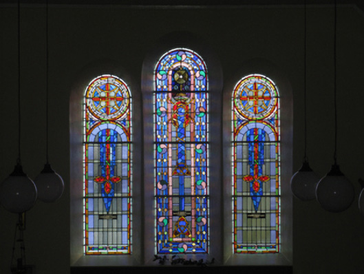 A church representing an integral component of the ecclesiastical heritage of Achill Island with the architectural value of the composition, one potentially repurposing the shell of a nineteenth-century chapel (1850), suggested by such attributes as the rectilinear "barn" plan form, aligned along a liturgically-correct axis; and the slender profile of the coupled openings underpinning a streamlined Romanesque theme with the chancel defined by an elegant "Trinity Window". Having been well maintained, the elementary form and massing survive intact together with quantities of the original fabric, both to the exterior and to the interior reordered (----) in accordance with the liturgical reforms sanctioned by the Second Ecumenical Council of the Vatican (1962-5) where the Toolis-Calvey Memorial "Trinity Window" (----) highlights the modest artistic potential of a church making a pleasing visual statement at the foot of Slievemore.