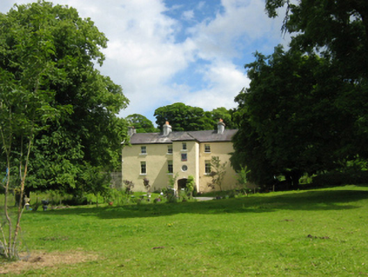 Detached five-bay two-storey over raised basement house, built 1680, on a T-shaped plan centred on single-bay full-height projecting breakfront; three- or five-bay full-height rear (east) elevation centred on single-bay full-height shallow breakfront. Sold, 1851. Leased 1901-11. Sold, 1916. Restored, 2005. Pitched slate roof on a T-shaped plan centred on hipped slate roof (breakfront), roll moulded clay ridge tiles, coping to gables with rendered chimney stacks to apexes centred on rendered chimney stacks having corbelled stepped stringcourses below capping supporting terracotta tapered or yellow terracotta octagonal pots, and replacement uPVC rainwater goods on timber eaves boards on rendered eaves retaining cast-iron octagonal or ogee hoppers and downpipes. Lime rendered or roughcast battered wall. Elliptical-headed central door opening (basement) with concealed dressings framing replacement glazed aluminium door having sidelights below overlight. Round central window opening (ground floor) with concealed dressings framing timber pivot fitting having cast-iron "spoke wheel" glazing bars. Square-headed central window opening (first floor) with cut-limestone sill, and concealed dressings framing two-over-two timber sash window. Square-headed window openings with cut-limestone sills, and concealed dressings framing two-over-two timber sash windows. Hipped square-headed central door opening to rear (east) elevation with concealed dressings framing glazed timber panelled door having sidelights. Square-headed window openings with cut-limestone sills, and concealed dressings framing six-over-six (south) or two-over-two (north) timber sash windows. Set in wooded grounds.
