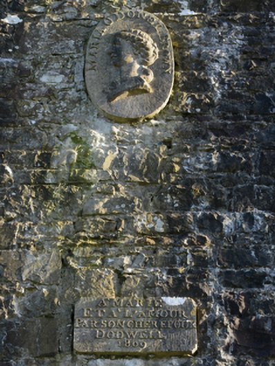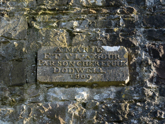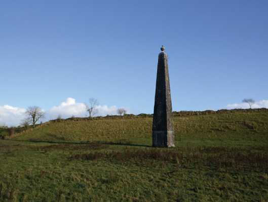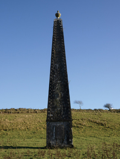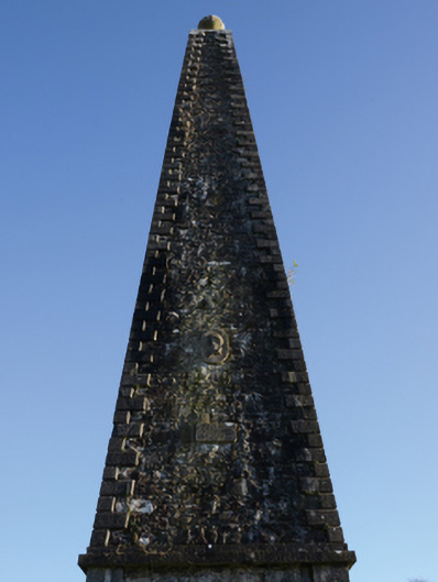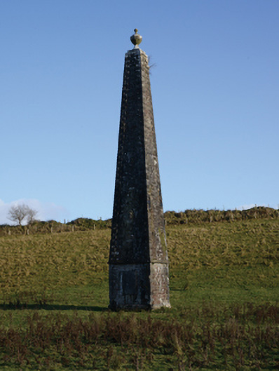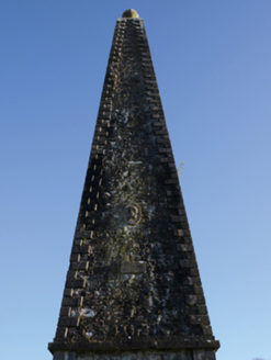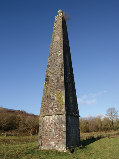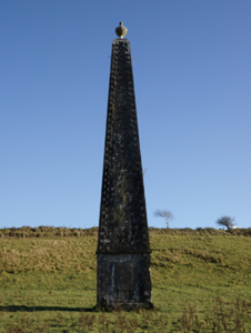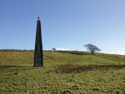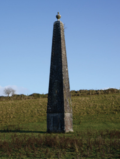 An urn-topped "cenotaph" or obelisk erected by Dodwell Browne (d. 1819) representing an important component of the early nineteenth-century built heritage of County Mayo with a "cameo" of Maria Browne (née O'Donel) (d. 1809) accompanied by the French dedication: "A MARIE ET A L'AMOUR PAR SON CHER EPOUX DODWELL 1809 [To Marie And To Love From Her Dear Husband Dodwell 1809]".