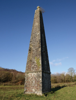 Freestanding monument, dated 1809, on a square plan. Set in grounds shared with Raheens House.