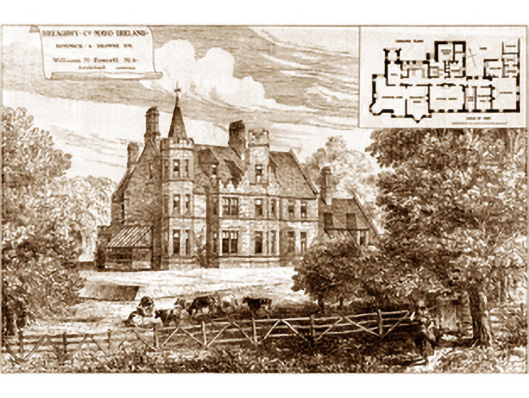 A country house erected for Dominick Andrew Browne JP DL (1824-1902) to a design by William Milner Fawcett MA (1832-1908) of Cambridge (Building News 10th June 1881, --) representing an important component of the later nineteenth-century domestic built heritage of County Mayo with the architectural value of the composition confirmed by such attributes as the deliberate alignment '[commanding] beautiful views of the extinct volcanic mountain, Croagh Patrick, and of Nephin, the highest of that range of hills' (ibid.); the compact, albeit multi-faceted plan form; the robust rock faced surface finish offset by sheer red sandstone dressings not only demonstrating good quality workmanship, but also producing a pleasing two-tone palette; the slight diminishing in scale of the openings on each floor producing a feint graduated visual impression with the principal "apartments" defined by angular or polygonal turrets; and the Scottish Baronial-esque crow stepped battlements embellishing a high pitched roofline. Although substantially damaged by fire (1969), and thereafter engulfed by "pastiche" blocks of minimal architectural interest, the elementary form and massing survive intact together with quantities of the historic or original fabric, both to the exterior and to the interior, including some crown or cylinder glazing panels in hornless sash frames surviving as interesting evidence of the eighteenth-century house annotated as "Breafy [of] Browne Esquire" by Taylor and Skinner (1778 pl. 73). Furthermore, an adjacent bridge (see 31307903); and a nearby gate lodge (see 31307904), all continue to contribute positively to the group and setting values of a much-diminished estate having historic connections with the Browne family including Dominick Sidney "The Major" Browne CBE (1866-1927), one-time High Sheriff of County Mayo (fl. 1896); and Brigadier Dominick Andrew Sidney Browne CBE (1904-82).