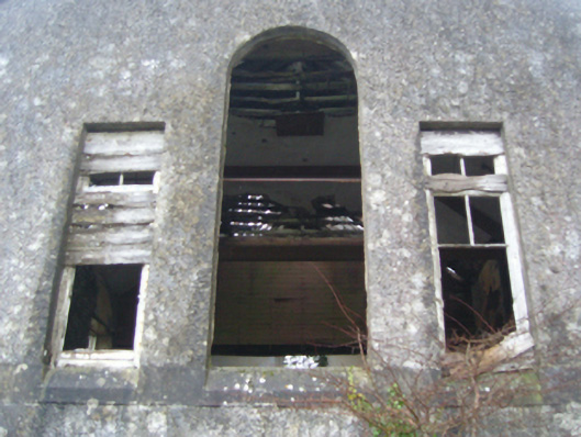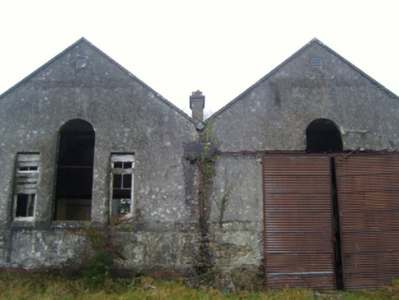 A dilapidated national school representing an integral component of the late nineteenth-century built heritage of the rural environs of Kiltimagh with the architectural value of the composition, one recalling the contemporary Kilmovee National School (1886), Kilmovee, confirmed by such attributes as the compact symmetrical plan form; the definition of the segregated classrooms by streamlined "Venetian Windows"; and the chevron-like multi-gabled roofline. A prolonged period of neglect notwithstanding, the elementary form and massing survive intact together with interesting remnants of the original fabric, both to the exterior and to the interior where an exposed Queen post roof construction pinpoints the engineering or technical dexterity of a national school making an increasingly forlorn visual statement in a pastoral setting.