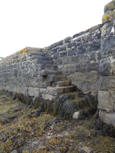 A pier erected with financial support from the Commissioners of Public Works (established 1831) representing an integral component of the nineteenth-century maritime civil engineering heritage of the outskirts of Westport.