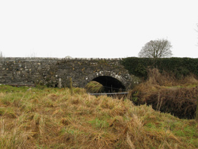 Single-arch road bridge over lough, extant 1894. Part ivy-covered walls with repointed lichen-covered hammered limestone rounded coping to parapets. Single segmental arch with repointed cut-limestone voussoirs. Sited spanning Ballyglass Lough with unkempt banks to lough.