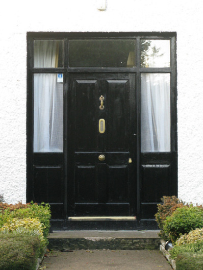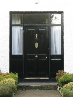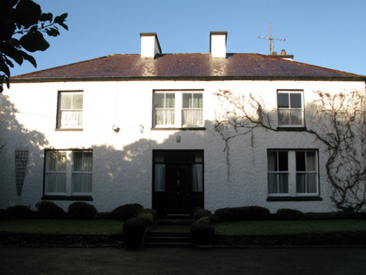 Detached three-bay two-storey Church of Ireland rectory, built 1908, on an L-shaped plan; single-bay (south) or two-bay (north) two-storey side elevations. Occupied, 1911. Hipped slate roof on an L-shaped plan with clay ridge tiles, paired rendered central chimney stacks having corbelled stepped capping supporting terracotta pots, and cast-iron rainwater goods on roughcast eaves retaining cast-iron downpipes. Part creeper- or ivy-covered roughcast walls bellcast over rendered plinth. Square-headed central door opening with timber mullions on step threshold supporting timber transom, and concealed dressings framing timber panelled door having sidelights on panelled risers below overlight. Square-headed flanking window openings in bipartite arrangement with concrete sills, timber mullions, and concealed dressings framing two-over-two timber sash windows. Square-headed window openings (first floor) with concrete sills, and concealed dressings framing two-over-two timber sash windows. Square-headed window openings (remainder) with concrete sills, and concealed dressings framing two-over-two timber sash windows. Interior including (ground floor): central hall retaining carved timber surrounds to door openings framing timber panelled doors; and carved timber surrounds to door openings to remainder framing timber panelled doors with carved timber surrounds to window openings framing timber panelled reveals or shutters. Set in landscaped grounds with rendered panelled piers to perimeter having "Cyma Recta"- or "Cyma Reversa"-detailed curvilinear gabled capping supporting wrought iron double gates.