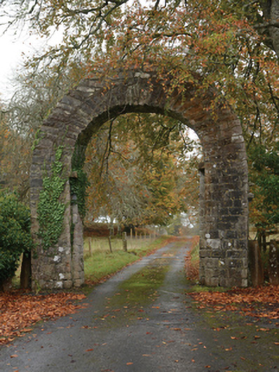 An eye-catching gateway making a pleasing visual statement in a sylvan setting at the entrance on to the grounds of the Partry estate.