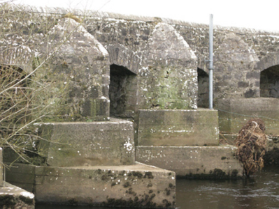 A bridge representing an integral component of the civil engineering heritage of south County Mayo with the architectural value of the composition suggested not only by the traditional construction in unrefined local fieldstone offset by limestone dressings demonstrating good quality workmanship, but also by the gentle "sweep" of the arches making a pleasing visual statement at a crossing over the Robe River: meanwhile, a much weathered benchmark remains of additional interest for the connections with cartography and the preparation of maps by the Ordnance Survey (established 1824).