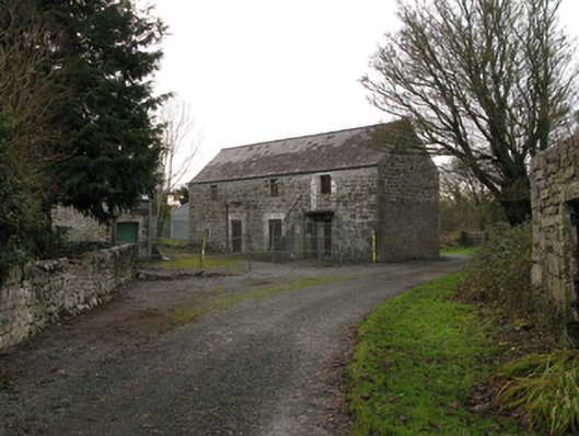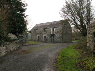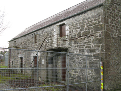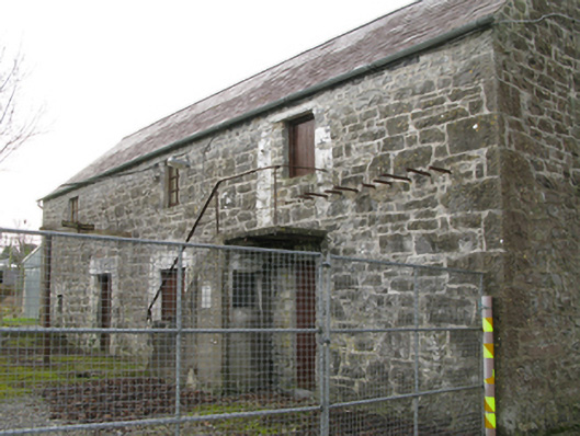 Detached three-bay single-storey mill with half-attic, extant 1838, on a rectangular plan. Closed, 1980. Restored, 2001. Now disused. Replacement pitched slate roof on collared timber construction with clay ridge tiles, and cast-iron rainwater goods with cast-iron downpipes. Repointed rubble limestone battered walls with benchmark-inscribed tooled hammered or rough hewn limestone flush quoins to corners. Square-headed door openings with tooled hammered limestone lintels framing replacement timber fittings. Square-headed window openings (half-attic) with hammered limestone lintels framing replacement timber fittings. Limewashed interior with cast-iron horizontal waterwheel. Set perpendicular to road.