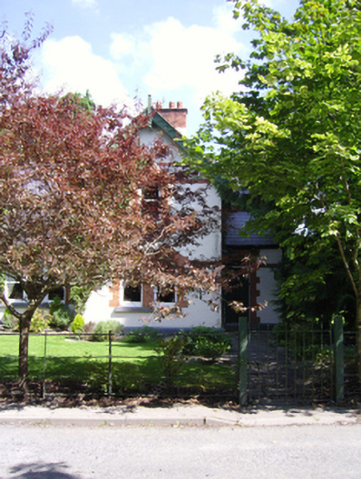Detached two-bay single-storey gate lodge with half-dormer attic, extant 1894, on an L-shaped plan with single-bay full-height gabled projecting end bay. Renovated, 1998, to accommodate continued private residential use. Pitched slate roof on an L-shaped plan with roll moulded clay ridge tiles, red brick Running bond chimney stack on rendered base having shallow concrete capping supporting crested terracotta pots, scallop-detailed timber bargeboards to gables on timber purlins with timber finials to apexes, and replacement uPVC rainwater goods on timber eaves boards on exposed timber rafters. Part creeper- or ivy-covered rendered walls on rendered chamfered plinth with red brick Running bond flush stringcourses. Triangular-headed window openings including paired triangular-headed window openings (ground floor) with cut-limestone sills, and red brick block-and-start surrounds framing one-over-one timber sash windows. Set back from line of road at entrance to grounds of Creagh House with wrought iron "estate railings" to perimeter.