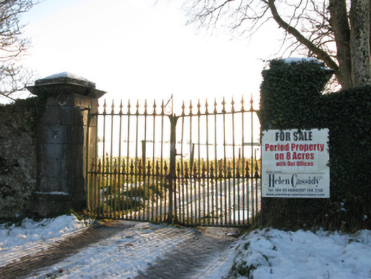 Gateway, extant 1838, on a symmetrical plan comprising pair of limestone ashlar piers on chamfered plinths having "Cavetto"-detailed cornices below shallow pyramidal capping supporting spear head-detailed cast-iron double gates with limestone ashlar outer piers on benchmark-inscribed chamfered plinths having "Cavetto"-detailed cornices below shallow pyramidal capping. Now disused. Road fronted at entrance to grounds of Annefield House.