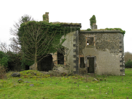 Remains of country house, built 1737; extant 1777; "improved" 1908, comprising: Detached four-bay two-storey wing on an L-shaped plan with single-bay (west) or two-bay (east) two-storey side elevations. Occupied, 1911. Sold, 1925. Mostly demolished, 1939. Vacant, 1945. Now in ruins. Remains of hipped slate roof on an L-shaped plan on collared timber construction with clay ridge tiles, ivy-covered rendered yellow brick Running bond chimney stacks with capping now missing, and remains of cast-iron rainwater goods on dragged cut-limestone "Cyma Recta" or "Cyma Reversa" cornice with downpipes now missing. Part ivy-covered fine roughcast walls over coursed rubble limestone construction with drag edged dragged cut-limestone quoins to corners. Square-headed window openings with some retaining drag edged dragged cut-limestone sills, and concealed yellow brick block-and-start surrounds with no fittings surviving. Square-headed door opening (north) with cut-limestone threshold, and drag edged dragged cut-limestone block-and-start surround centred on triple keystone with no fittings surviving. Interior in ruins. Set in unkempt grounds.