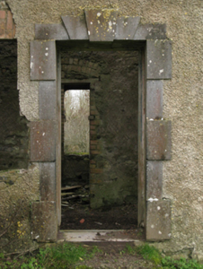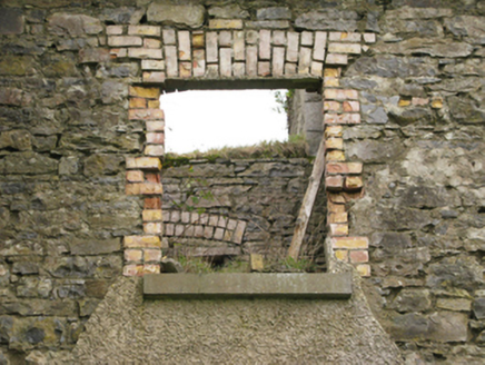 An increasingly-ruined wing not only surviving as a relic of an eighteenth-century country house annotated as "The Neale [of] Browne Baronet" by Taylor and Skinner (1778 pl. 217), but also clearly illustrating the continued development or "improvement" of the country house for John Edward Deane Browne (1878-1946), fifth Baron Kilmaine, to a design attributed to Cecil Arthur Fowler (b. 1876) of Kilkenny and Sligo (IAA).
