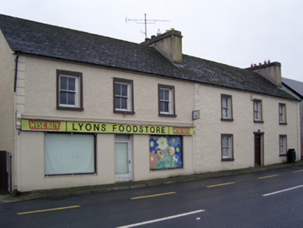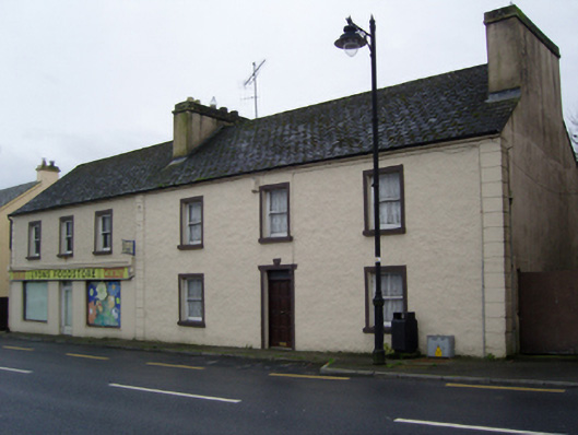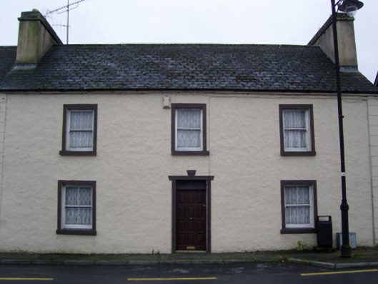 Semi-detached three-bay two-storey house, extant 1838, on a rectangular plan. Occupied, 1901; 1911. Reroofed, ----. Now disused. One of a pair. Replacement pitched artificial slate roof with clay ridge tiles, cement rendered chimney stacks having stringcourses below capping supporting yellow terracotta pots, and cast-iron rainwater goods on rendered eaves. Roughcast walls with rusticated rendered piers to ends. Square-headed central door opening with rendered surround centred on panelled keystone framing replacement timber panelled door having overlight. Square-headed window openings with sills, and rendered surrounds framing two-over-two timber sash windows having part exposed sash boxes. Street fronted with concrete footpath to front.