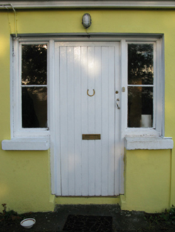Detached three-bay single-storey house, post-1930, on a symmetrical plan. Hipped slate roof with terracotta ridge tiles, rendered chimney stacks having stringcourses below capping supporting terracotta pots, and cast-iron rainwater goods on timber eaves boards. Rendered walls. Hipped square-headed central door opening with concealed dressings framing timber boarded or tongue-and-groove timber panelled door having sidelights. Square-headed flanking window openings in bipartite arrangement with concrete sills, timber mullions, and concealed dressings framing two-over-two timber sash windows. Set back from road in landscaped grounds with rendered piers to perimeter having concrete capping supporting wrought iron gate.