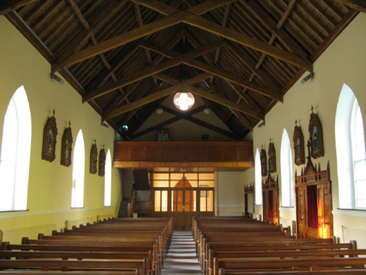 A church regarded as an integral component of the later nineteenth-century ecclesiastical heritage of south County Mayo with the architectural value of the composition, one erected with the financial assistance of a mortgage drawn (1874) by Sister Margaret Higgins (d. 1903) of nearby Glencorrib Lodge, confirmed by such attributes as the rectilinear "barn" plan form, aligned along a slightly skewed liturgically-correct axis; and the "pointed" profile of the openings underpinning a stolid Georgian Gothic theme with those openings showing pretty Churchwarden tracery glazing patterns: meanwhile, aspects of the composition clearly illustrate the later "improvement" of the church under the aegis of Reverend Henry "Harry" Feeney PP (1889-1945; fl. 1931-45). Having been well maintained, the elementary form and massing survive intact together with substantial quantities of the original fabric, both to the exterior and to the restrained interior where an exposed timber roof construction pinpoints the engineering or technical dexterity of a church making a pleasing visual statement in a sylvan street scene.
