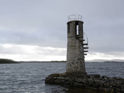 A lakeshore "lighthouse" erected by Charles Lynch DL (d. 1897) representing an important component of the mid nineteenth-century built heritage of south County Mayo. NOTE: Although traditionally cited as a late eighteenth-century "improvement" of the Ballycurrin House estate, quoting a date stone ("1772") on the adjacent boathouse, the "lighthouse" does not appear on the first edition of the Ordnance Survey (surveyed 1838; published 1840) and an accompanying date stone ("1847") indicates a period of construction coinciding with the height of the Great Famine (1845-9).