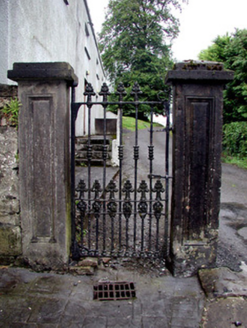 Tooled ashlar gate piers, erected c.1850, providing access to Alderford House. Comprising carved panel with raised-and-fielded moulding and surmounted by rectangular profile cap. Gates to pedestrian gate way to north survive. Cast-iron gates with decorative finials.