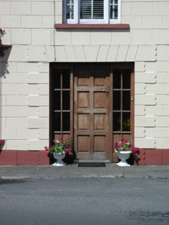Pair of semi-detached three-bay two-storey houses, built c.1920, with canted bays to ground-floor and extension to rear. Hipped tiled roofs with rendered chimneystacks. Render to walls with chanelling and quoins. Timber sash windows. Centrally-placed timber panelled doors with sidelights. Single-storey outbuildings to rear with corrugated-iron roof. Houses front onto street.