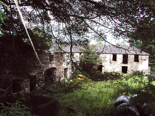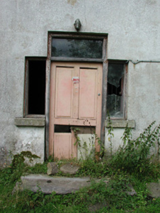 This country house, although unoccupied and derelict, is impressive with its unusual design and its attractive location overlooking Lough Meelagh. The bowed gable with its full-height windows and rear canted bay coupled with the half bow to the front elevation raises the design quality of this house. The range of outbuildings and gate lodge further enhance the site.
