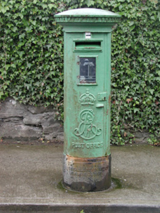 This Edward VII post box is simple in design with decorative detailing on cap and pillar. The execution of the elaborate intertwined raised lettering and crown adds artistic interest to this functional object.
